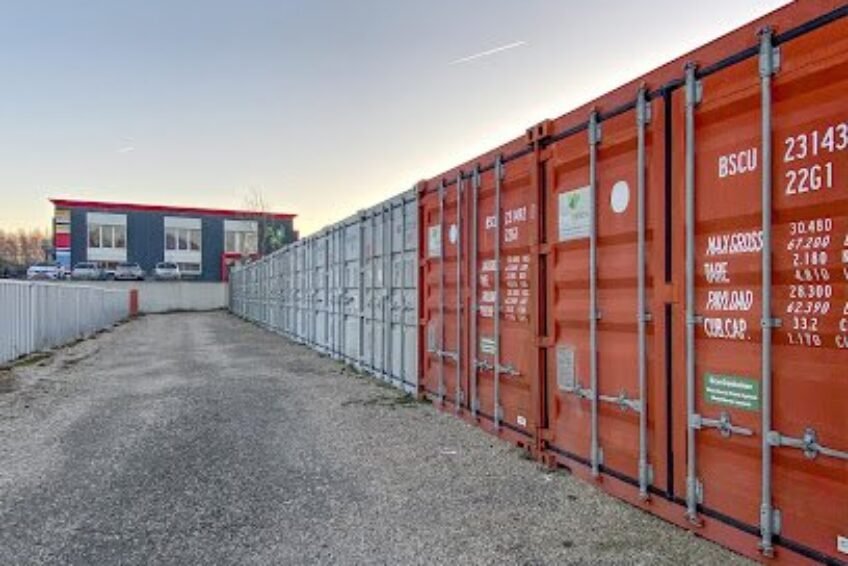 • Stockage dans des containers maritimes sécurisés, étanches et fermés à clé, disponibles en plusieurs tailles (de 5,7 m² à 28 m²).
